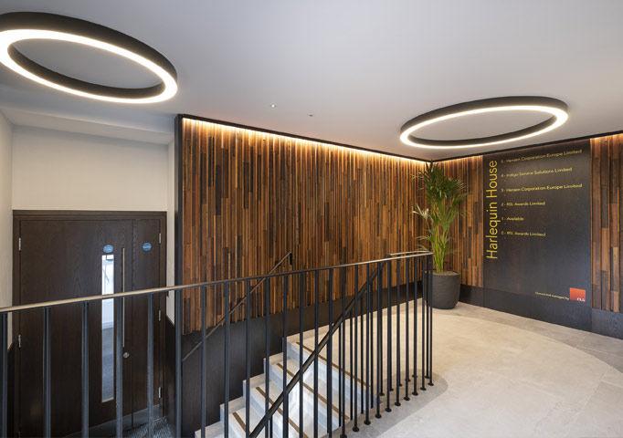 Harlequin House offers a range of good quality air conditioned office floors, some open plan some already benefitting from existing partitioning. All have kitchenettes installed and benefit from excellent natural light and are served by two passenger lifts. The common parts have recently been refurbished with a new quality main entrance with the added benefit of showers and disabled WC’s.