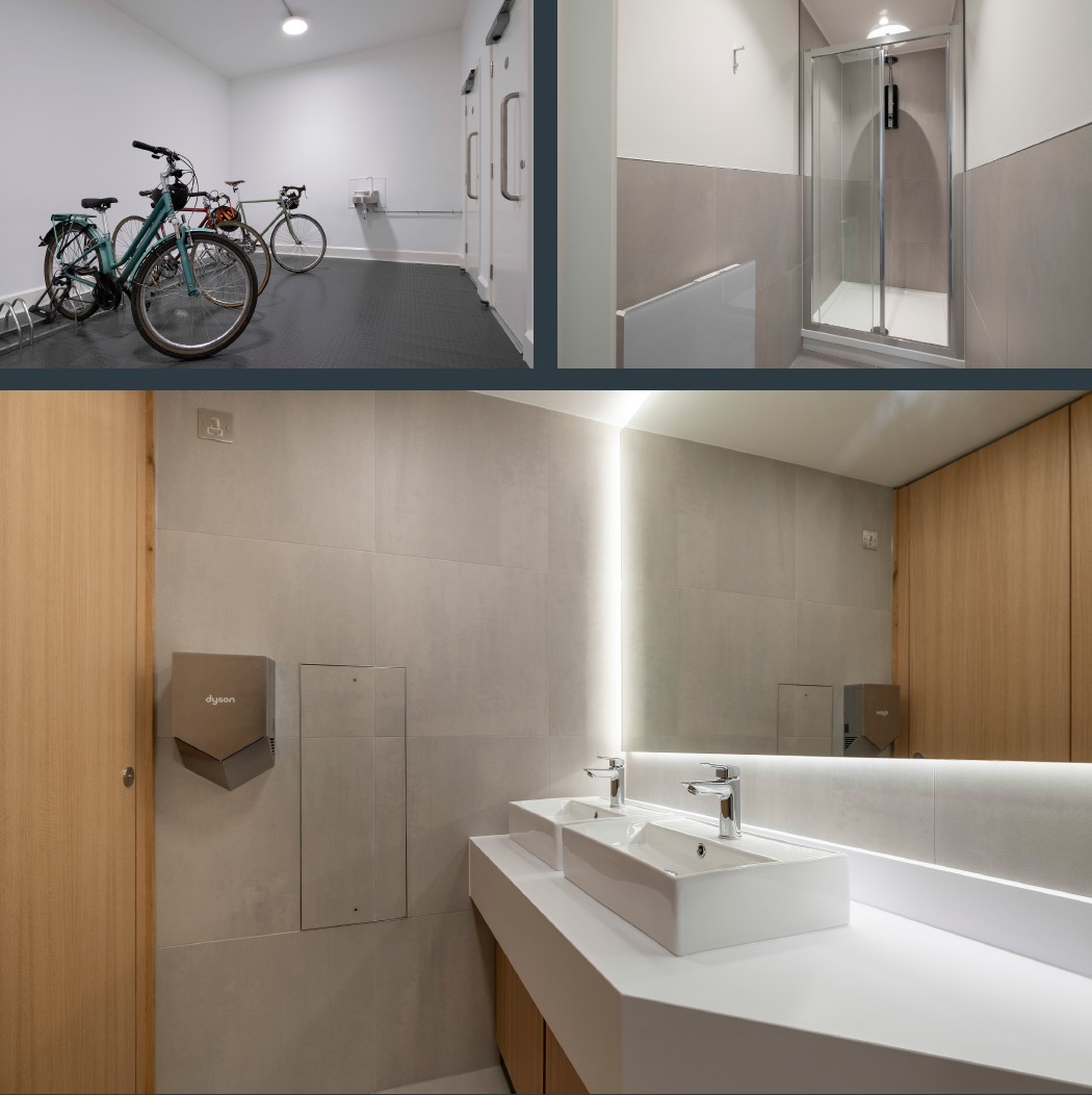 In addition, there is a new secure indoor heated cycle storage facility located to the rear of the building with shower, changing area, and WC included together with a water bottle refill station and comprehensive bike tool kit and pump for use by all tenants.